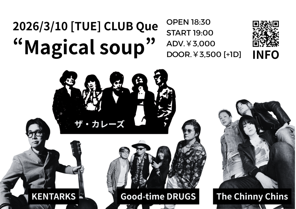 | TICKET | ADV. ¥3,000 / DAY. ¥3,500 + 1drink https://livepocket.jp/e/que20260310 |